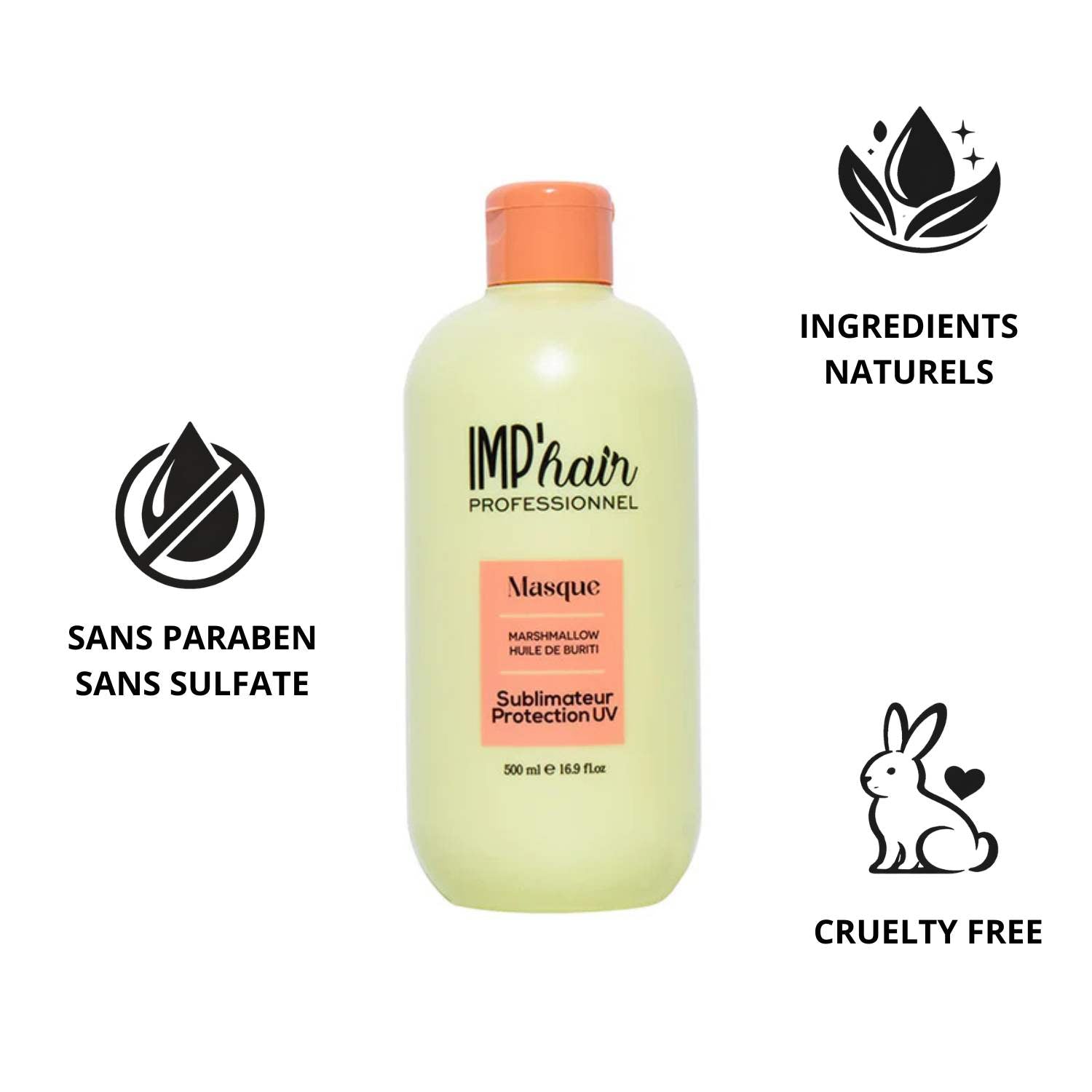 Ce masque onctueux est un soin intensif qui répare les cheveux secs ou abîmés. La poudre de guimauve forme un film protecteur autour de la fibre capillaire, tandis que l'huile de buriti apporte une hydratation profonde. Il facilite le démêlage, réduit les frisottis et laisse les cheveux visiblement plus doux, brillants et faciles à coiffer.